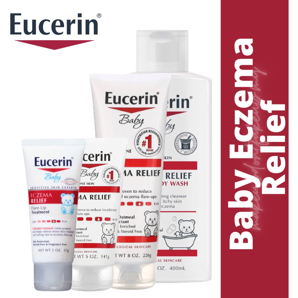 Baby Eczema Relief Cream. Eucerin Baby Eczema Relief Cream Body Wash is a gentle non-foaming cleanser that helps to calm dry itchy skin associated with eczema. Gentle on sensitive eczema-prone skin.